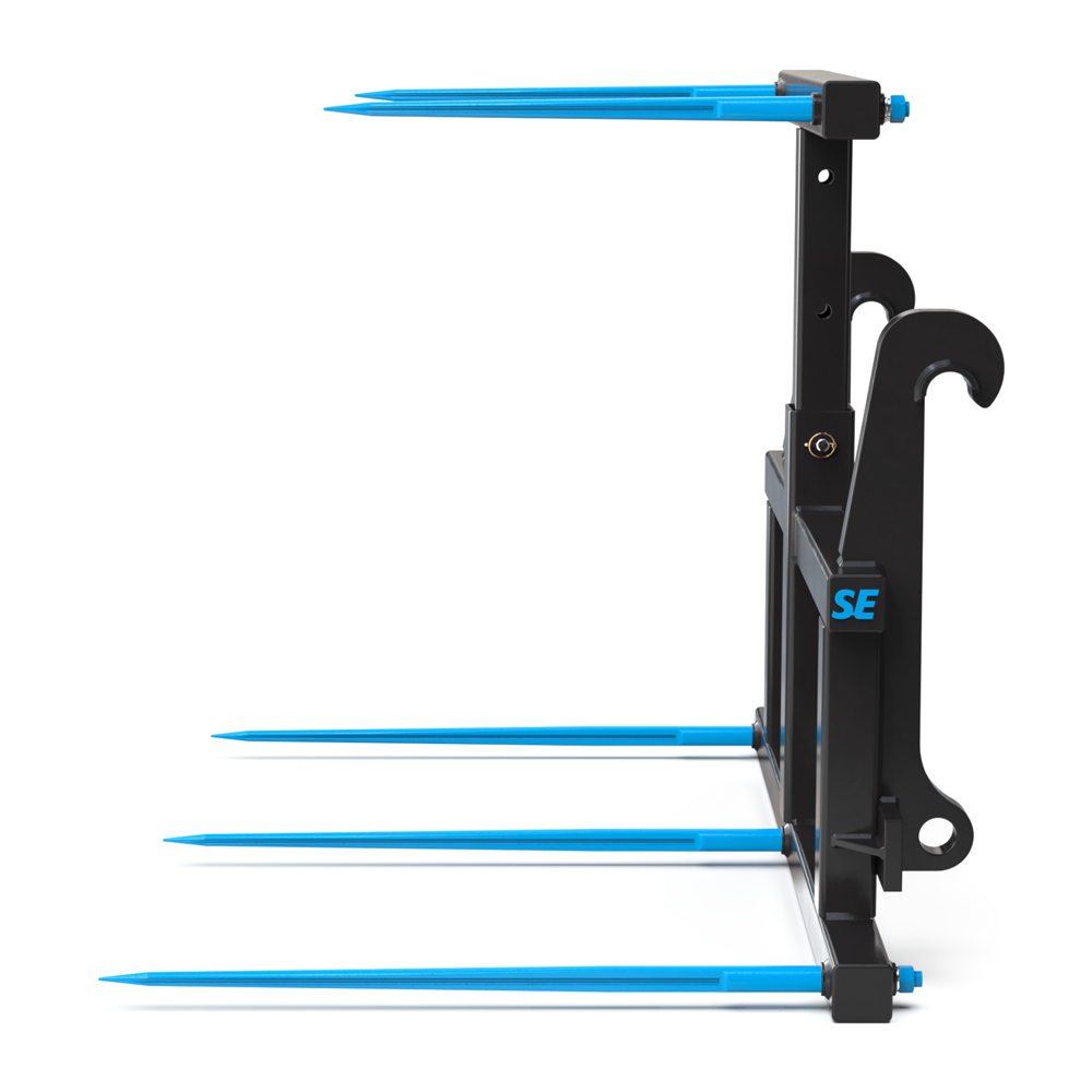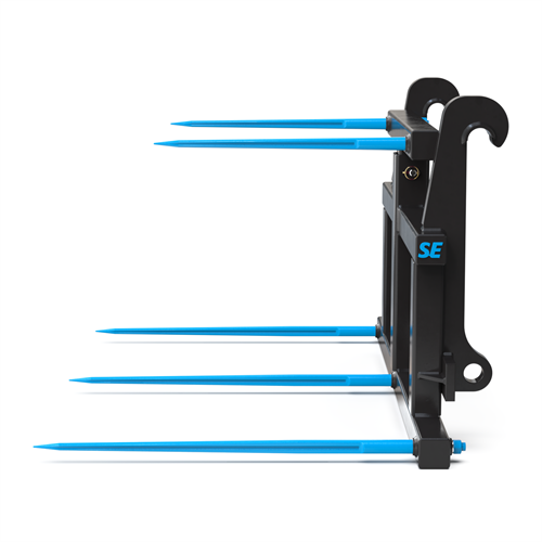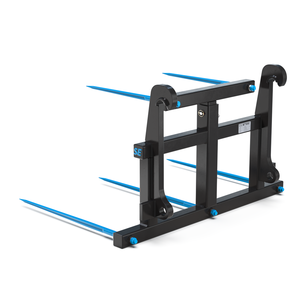 Med SE Equipments balspjut för hjullastare med Stora BM-fäste får du ett professionellt redskap som är byggt för att klara stora volymer balar – snabbt, säkert och effektivt. Den höj- och sänkbara överdelen, de fem spjuten och den stabila konstruktionen gör det till ett pålitligt val för alla som arbetar med fyrkantsbalar i hög takt. Redskapet kombinerar styrka, flexibilitet och hållbarhet, vilket gör det till en investering som håller i längden.