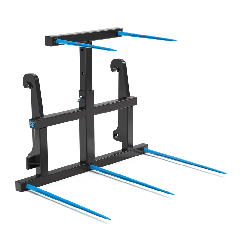 SE Equipments balspjut med Stora BM-fäste är ett robust och mångsidigt redskap som är särskilt utvecklat för att hantera flera oplastade fyrkantsbalar samtidigt. Den är utrustad med fem spjut – tre nedre och två övre – och har dessutom en höj- och sänkbar överdel som ger dig full kontroll över lastning, stapling och förflyttning. Detta gör redskapet till ett idealiskt val för gårdar och lantbruk där stora volymer hö eller halm hanteras dagligen. Spjuten är strategiskt monterade i koniska hylsor för maximal stabilitet, samtidigt som den kraftiga ramen säkerställer lång hållbarhet och hög lastkapacitet. Den välbalanserade designen underlättar arbetet i varierande terräng och skapar ett tryggt och effektivt arbetsflöde.